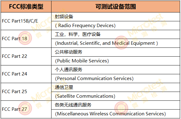 微測檢測獲得授權(quán)FCC標(biāo)準(zhǔn)包括: