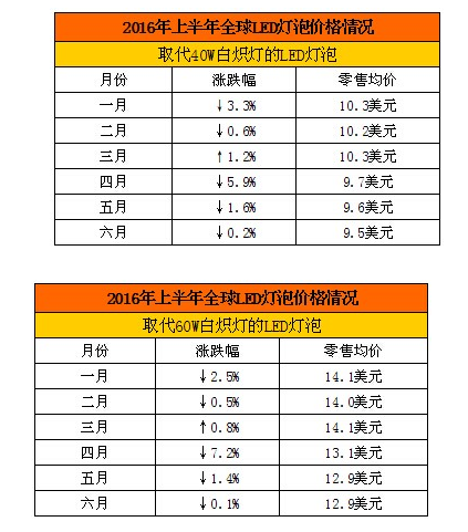 從價(jià)格方面看,以使用范圍最廣泛的40瓦LED燈泡和60瓦LED燈泡為例,LED燈具的整體價(jià)格呈下降趨勢(shì)。近兩年,LED行業(yè)價(jià)格戰(zhàn)加劇,是造成燈具成品價(jià)格整體呈下降趨勢(shì)的主因。雖然LED上游芯片、中游封裝的關(guān)鍵技術(shù)仍然把握在國(guó)內(nèi)外主要大廠手中,但下游LED燈具成品的生產(chǎn)技術(shù)已相當(dāng)成熟,中小型生產(chǎn)企業(yè)林立。LED產(chǎn)品的整體價(jià)格下降有利于提升其在市場(chǎng)的占有率,但對(duì)于中小型企業(yè)而言,致使利潤(rùn)下跌,生存困境進(jìn)一步加劇。